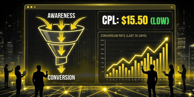 Google Ads, Meta Ads, and LinkedIn Ads optimized for cost-per-lead.